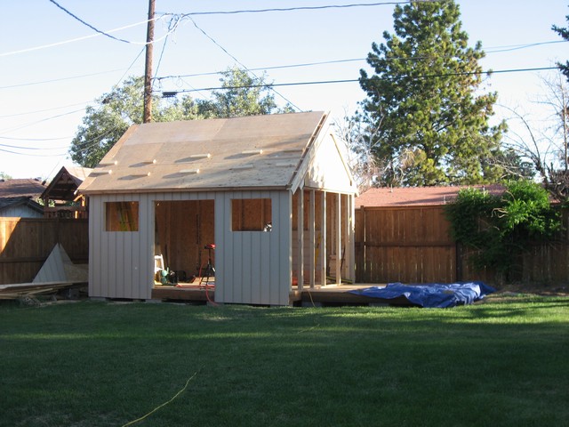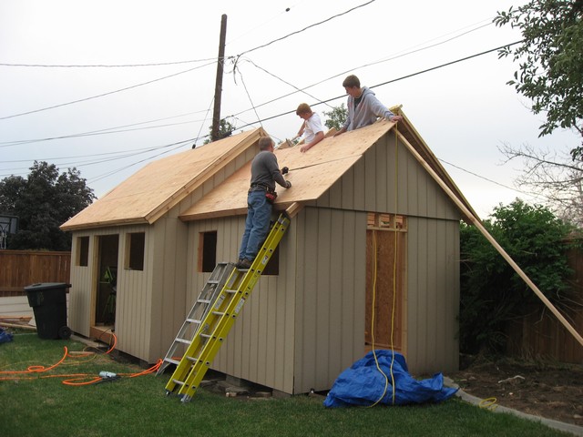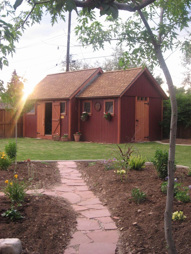 I have a large back yard and needed the storage space so I built two sheds and put them together. For both barns I used the Colonial 12×16 plan and then reduced it down (10×10) for the smaller section and connected both together. It worked out great and I love the look. This was a great project for my son and me to work on. The Better Barns plans and DVD made building the barn easy and a fun learning project. From start to finish it took three months to complete. We worked evenings and weekends leaving plenty of time for vacations and waterskiing. I only needed a neighbor’s help raising the walls and trusses. I found the windows and hardware through Better Barns a nice finishing touch addition to the barn. We call our barn “The Bucket” because it seems holds everything I need from tools and gardening supplies to holiday Christmas lights. I love my new Bucket! And to the staff at Better Barns, Thanks so much.