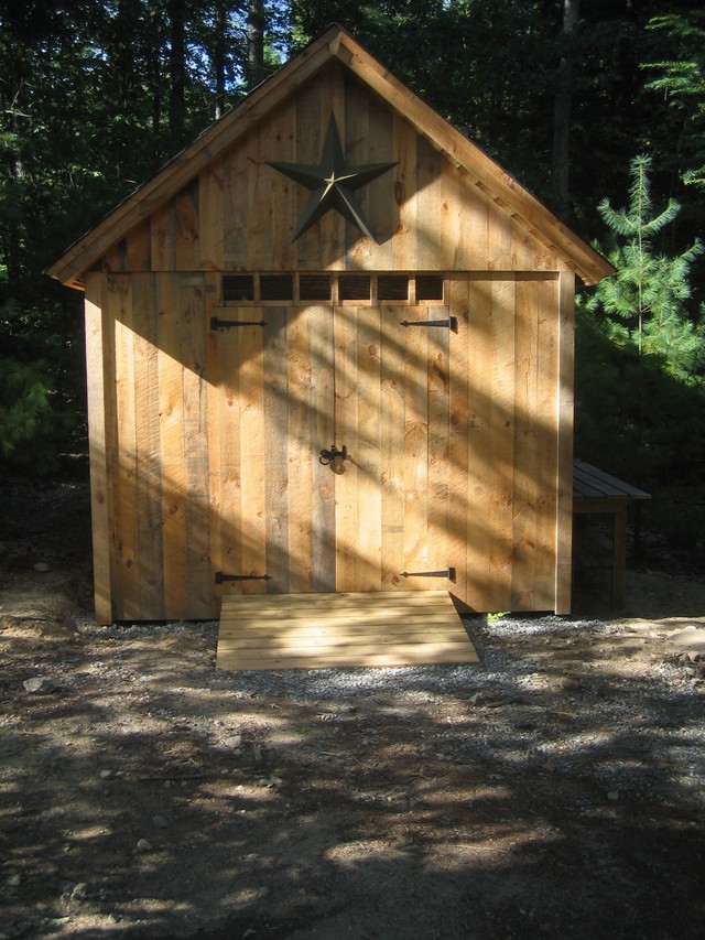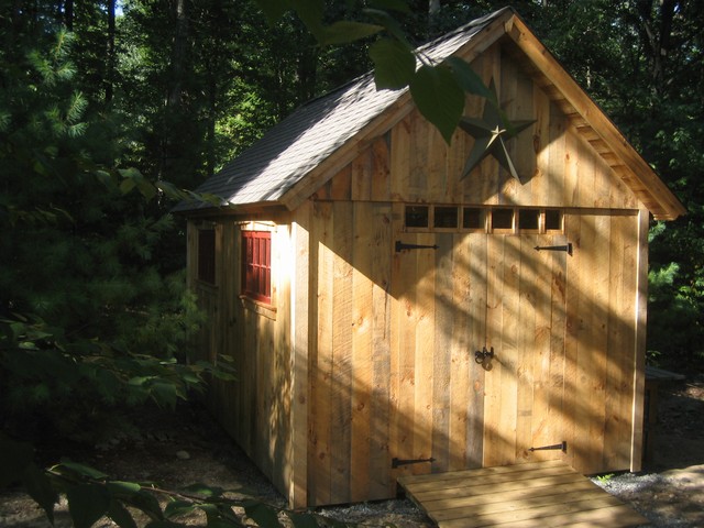 Hi! I built this shed in the Summer of 2007. I used rough cut pine with Shiplap edges for the siding, MUCH less $$$ than cedar, and IMO it looks great. The plans were well done – heck, if I can build it, they must be!